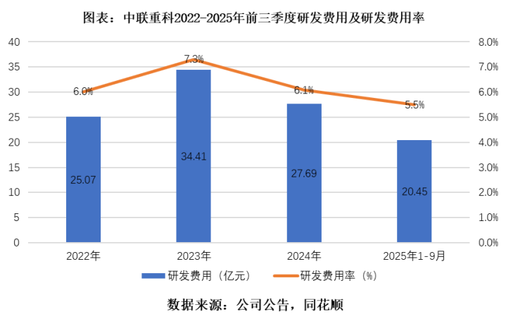 资本市场的青睐源于底层业绩的支撑。2025年前三季度,中联重科实现营业收入371.56亿元,同比增长8.06%;归母净利润39.20亿元,同比增长24.89%。在行业筑底期实现利润增速远超收入增速,证明了该公司降本增效、高端化转型的显著效果。2025年12月,该公司发放了17.3亿元的现金分红,展现了资金实力与回报股东的意愿。